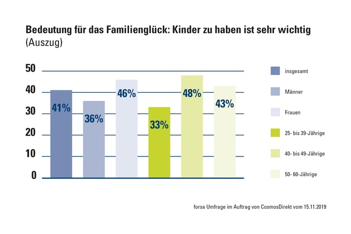 eigene Kinder als sehr wichtig für das Familienglück ein, verglichen mit 48