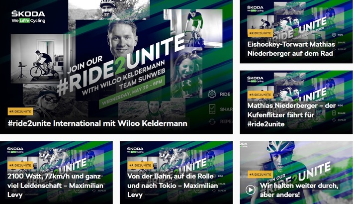 Auch Profis aus anderen Sportarten nehmen an der Aktion #Ride2Unite teil. So hat zum Beispiel der deutsche Eishockey-Torwart Mathias Niederberger (http://www.wel ovecycling.com/de/2020/05/21/eishockey-torwart-mathias-niederberger-auf-dem-rad/ ) für den Ride seine Schlittschuhe gegen das Fahrrad getauscht. Während seiner Trainingseinheit stand er Eishockey-Kommentator Rick Goldmann Rede und Antwort, erzählte zum Beispiel davon, wie er sich fit hält und welche Rolle Radfahren in seiner Sportroutine einnimmt. Wer als nächstes in die Pedale tritt und wann das nächste Online-Trainingsevent ansteht, erfahren Fans auf den Facebook (http://www.facebook.com/skodaradsport) – und Instagram (http://www.instagram.com/welovecycling.de/) -Kanälen von SKODA.