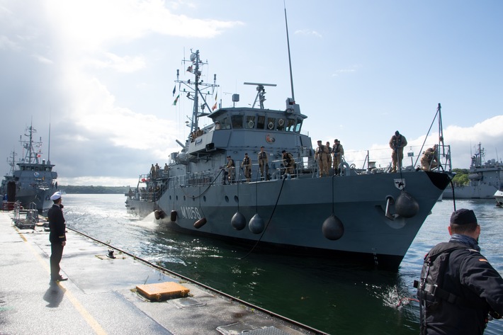 Das Minenjagdboot „Fulda“ untersteht seit Einlaufen wieder dem deutschen Marinekommando. Das Minenjagdboot „Grömitz“ wird für die kommenden Monate dem NATO- Marinehauptquartier Allied Maritime Command in Northwood (Großbritannien) unterstellt und ist ab sofort in Auslaufbereitschaft. Das Boot wird in den nächsten Wochen unter Führung des SNMCMG 1-Kommandeurs bereits an dem Ostseemanöver BALTOPS teilnehmen.