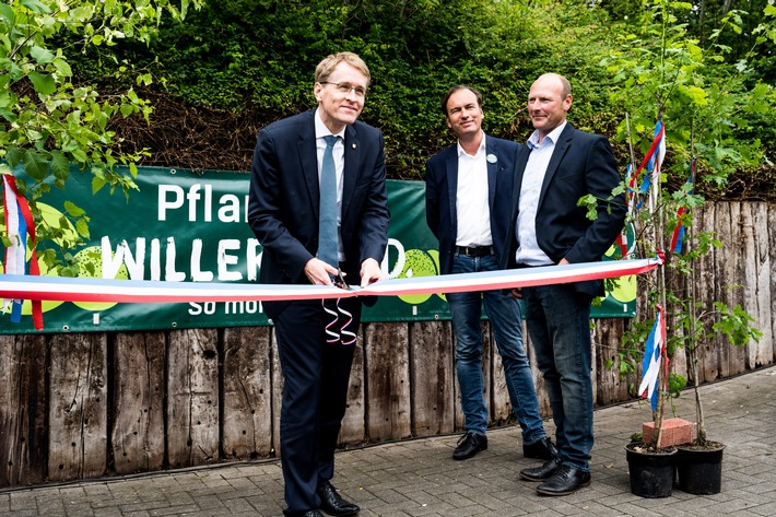 Erfreulich sei die Aktion des Familienunternehmens Willer, das Land beim Waldprojekt zu unterstützen – und das sei gleich in großem Maße und so vorbildlich, dass Ministerpräsident Daniel Günther die Schirmherrschaft übernommen habe: „Die Unternehmerfamilie Willer bzw. die Anton Willer GmbH & Co. KG nimmt hier eine beispielhafte Vorreiterrolle ein, der hoffentlich noch viele folgen werden“, so Günther, denn auch wenn Schleswig-Holstein als Land zwischen den Meeren über ein gutes Klima verfüge, brauche es mittelfristig mehr Wald. „Gerade wir als Tankstellenbetreiber sind uns unserer besonderen Verantwortung bewusst, für einen klimatischen Ausgleich zu sorgen“, erklärt Georg Willer, der garantiert, dass das Unternehmen die laufenden Kosten für das Projekt, für das jährlich ein fünfstelliger Betrag veranschlagt ist, nicht auf seine Kunden umlegen werde. „Das Projekt ist auf Dauer angelegt und läuft so lange, wie wir Sprit verkaufen“ ergänzt Axel Niesing, geschäftsführender Gesellschafter des Unternehmens. Anlässlich des Projektstart am Unternehmenssitz in Kiel, kamen zum Wochenende neben dem Ministerpräsidenten auch zahlreiche Abgeordnete des Landtages, unter anderem auch der neue Justizminister Claus Christian Claussen. „Wir denken und wir handeln gemeinsam hier in Schleswig-Holstein, es ist unsere Heimat und dafür sind wir gerne bereit uns stark zu machen.“ erklärte Axel Niesing abschließend, bevor er mit Ministerpräsident Daniel Günther und Georg Willer das Schleswig-Holstein Band als symbolischen Startschuss durchtrennte. Weitere Informationen: http://www.schlautanken.sh