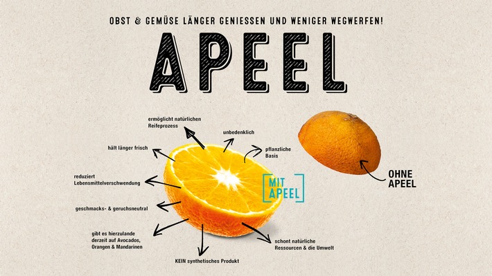 Die Apeel-Hülle besteht aus pflanzlichen Fetten, die in Schalen, Samen und im Fruchtfleisch aller Obst- und Gemüsesorten enthalten sind. Der Nutzen ist gleich zweifach: Aus noch mehr Freude am Genuss wird zugleich ein wichtiger Beitrag gegen Lebensmittelverschwendung. Ein brandaktuelles Thema: Denn Studien zufolge werden Jahr für Jahr in Deutschland mehr als zwölf Millionen Tonnen Lebensmittel entsorgt, mehr als die Hälfte davon in privaten Haushalten (Quelle: BMEL Ernährungsreport 2020).