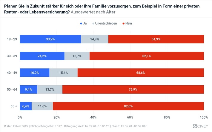 Befragt wurden Bundesbürger ab 18 Jahren. Der Befragungszeitraum, die Stichprobengröße und der statistische Fehler können in den Live-Daten (https://app.civey.com/dashboards/live-daten-altersvorsorge-presse-2540) eingesehen werden. Gerne senden wir Ihnen Downloads der Grafiken in Ihren passenden Größen zu.