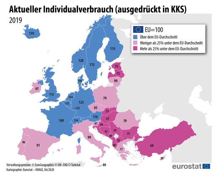 Diese Daten für den tatsächlichen Individualverbrauch pro Kopf, ausgedrückt in KKS, werden von Eurostat, dem statistischen Amt der Europäischen Union, veröffentlicht.