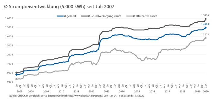 Grundversorgungstarife (20.000 kWh) aktuell im Vergleich zu Januar 2019 3,4