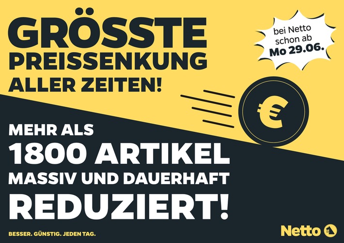 Stavenhagen (ots) – Bereits ab dem 29. Juni 2020 (nicht erst ab dem 1. Juli 2020) wird der regionale Discounter Netto die Preise des gesamten Sortiments und somit von mehr als 1800 Artikeln deutlich senken.
