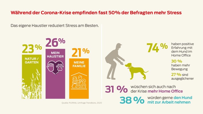 Euskirchen (ots) – Das eigene Haustier ist das wichtigste Mittel, um in der aktuellen Krisensituation Stressgefühle zu reduzieren. Das zeigt eine von PURINA erhobene Trendstudie zum Thema Haustiere am Arbeitsplatz[1] – gerade in Corona-Zeiten und der für viele nun schon lange anhaltenden Home Office-Situation.