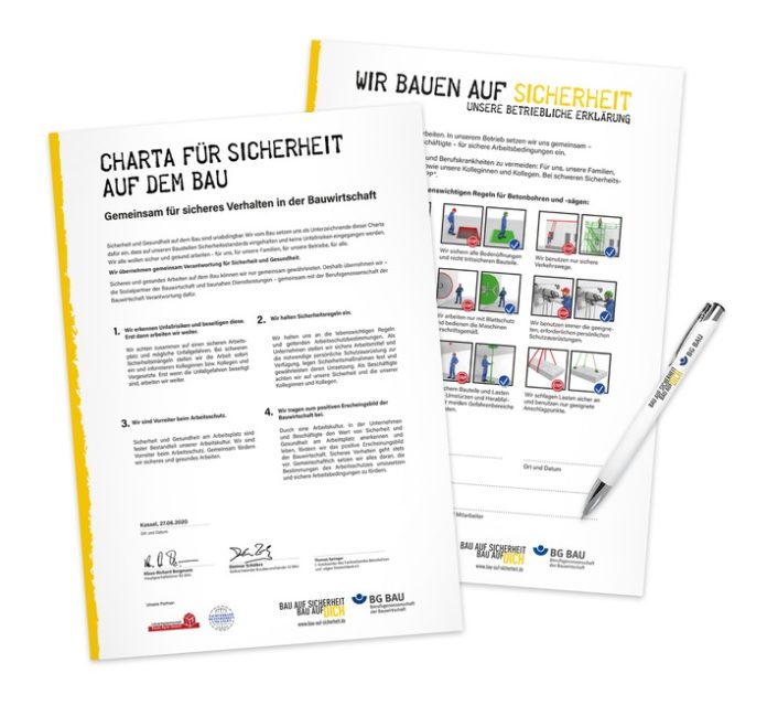 Die „Charta für mehr Sicherheit auf dem Bau“ ist Teil des Präventionsprogramms BAU AUF SICHERHEIT. BAU AUF DICH, welches die BG BAU zur Verankerung branchenspezifischer lebenswichtiger Verhaltensregeln ins Leben gerufen hat. Seine Kernbotschaft lautet „Jede und jeder hat das Recht und auch die Pflicht „STOPP!“ zu sagen, um Risiken zu vermeiden. Niemand darf durch riskantes Verhalten sein Leben und seine Gesundheit oder das Anderer leichtfertig aufs Spiel setzen.“ Weitere Informationen unter https://www.bau-auf-sicherheit.de/startseite.html