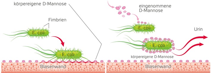 Blasenentzündungen und Harnwegsinfekte werden in 90% aller Fälle durch E. coli-Bakterien ausgelöst. Die Einnahme von D-Mannose ist eine Möglichkeit, diese Bakterien bei Blasenentzündungen und Harnwegsinfekten zu bekämpfen oder einer Blasenentzündung vorzubeugen. Das Trinkgranulat Femannose® N enthält D-Mannose und wirkt in der unterstützenden Behandlung und Prävention von Blasenentzündungen. Der natürliche Wirkstoff D-Mannose ummantelt die infektionsverursachenden E. coli-Bakterien, verhindert so das Festsetzen an der Blasenschleimhaut und sorgt dafür, dass die Bakterien ausgespült werden. Auch nach dem Abklingen der Beschwerden ist die Einnahme über einen Zeitraum von 30 Tagen empfehlenswert, damit die aus Keimreservoirs der Blasenschleimhaut freigesetzten Bakterien vollständig ausgespült werden und keine weitere Infektion verursachen können. Femannose® N kann auch begleitend zu einer Antibiotikabehandlung eingesetzt werden – hier zeigt sich eine synergetische Wirkung. Durch D-Mannose wird die Wirksamkeit des Antibiotikums nicht beeinträchtigt, sondern auf sinnvolle Weise ergänzt. Das Produkt bildet aufgrund des Wirkmechanismus keine Resistenzen. In einer aktuell durchgeführten Studie [1] bestätigten 85% der Anwenderinnen die Wirkung von Femannose® N in der unterstützenden Behandlung als exzellent bis gut. Die durch eine Blasenentzündung hervorgerufenen Beeinträchtigungen in den täglichen und gesellschaftlichen Aktivitäten reduzierten sich unter der Anwendung bereits in den ersten drei Tagen deutlich. Das Produkt steht somit für hohe Qualität in Verbindung mit einer von Anwendern bestätigten Wirkung und Verträglichkeit.