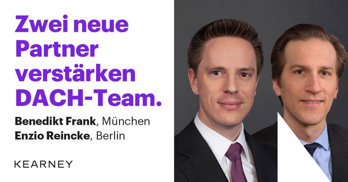 Düsseldorf (ots) – Mit den neu gewählten Partnern Dr. Benedikt Frank und Dr. Enzio Reincke baut die Unternehmensberatung Kearney in der DACH Region gleich ihre Kompetenzen für die Bereiche Chemie und Energie sowie Private Equity. Weltweit begrüßt Kearney insgesamt 24 neue Partnerinnen und Partner in ihren Reihen.