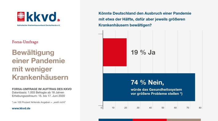 Berlin (ots) – 74 Prozent der Bürger glauben nicht, dass Deutschland Pandemien wie die Corona-Pandemie mit deutlich weniger, dafür jeweils größeren Krankenhäusern hätte bewältigen können. Dies ist das Ergebnis einer repräsentativen Umfrage des Meinungsforschungsinstituts forsa im Auftrag des Katholischen Krankenhausverbands Deutschlands (kkvd). Eine solche drastische Reduzierung der Krankenhausstandorte in Deutschland wird von einigen Wissenschaftlern gefordert. Gleichzeitig ist 93 Prozent der Befragten ein wohnortnahes Krankenhaus sehr wichtig (62 Prozent) oder wichtig (31 Prozent).