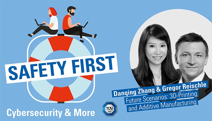 Gregor Reischle, Leiter Additive Manufacturing bei TÜV SÜD und Danqing Zhang, Program Manager Additive Manufacturing TÜV SÜD Asia Pacific sind in der aktuellen Episode des Podcasts Safety First von TÜV SÜD zu Gast. Sie beleuchten dieses Zukunftsthema aus verschiedenen Perspektiven und erklären, warum auch beim Thema Additive Manufacturing die Cybersecurity eine große Rolle spielt.