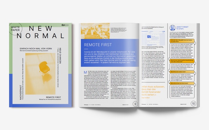 Hamburg (ots) – Wie wird es nach Corona weitergehen? Schon jetzt zeichnet sich ab: Einige der Pandemie-bedingten Entwicklungen werden unsere Arbeit langfristig verändern. Das neue Whitepaper der Deutschen Presse-Agentur gibt Einblicke in die von der Krise beschleunigten Veränderungsprozesse und beleuchtet, was die „Neue Normalität“ für die Unternehmens- und Markenkommunikation bedeutet.