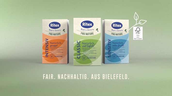 Bielefeld (ots) – Der Kondomhersteller Ritex aus Bielefeld hat mit seiner neuen Ritex PRO NATURE Range einen Meilenstein in Richtung Nachhaltigkeit gesetzt. Die CLASSIC, SENSITIV und INTENSIV Kondome werden aus 100″ FSC® zertifiziertem Naturkautschuklatex hergestellt. Das FSC-Zeichen steht für einen ökologisch nachhaltigen und fairen Anbau des Rohstoffs. Darüberhinaus setzt Ritex EKOenergy Strom und klimaneutrales Ökoplus Erdgas in der Produktion ein. Auch bei der Verpackung der Kondome geht Ritex schon seit einiger Zeit neue Wege. Die Verkaufsschachteln bestehen aus einem innovativen Mix aus Grasfaser und Recyclingpapier.