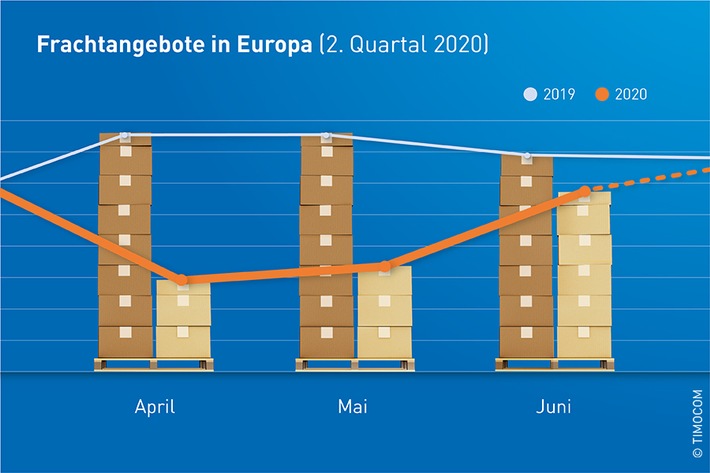 TIMOCOM Transportbarometer: Corona verursacht drastische Rückgänge / Frachtstarke Monate brechen europaweit ein – seit Juni wieder Erholung spürbar