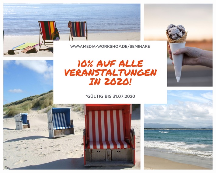 Wer sein Fortbildungsbudget nicht verfallen lassen möchte und noch in diesem Jahr frisches Wissen tanken will, kann sich bis 31. Juli 2020 mit der aktuellen Sommeraktion auf 10% Preisvorteil für alle Veranstaltungen freuen. Da die Plätze begrenzt sind, empfiehlt sich eine rechtzeitige Buchung oder Platzreservierung.