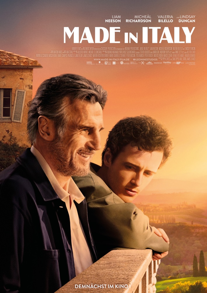 Der Feelgood-Film dieses Sommers! MADE IN ITALY ist eine herzerwärmende Komödie, angesiedelt inmitten der sanften Hügel der sonnendurchfluteten Toskana. Eine Familiengeschichte voller Esprit und Humor. In den Hauptrollen zu sehen: der Oscar©-nominierte Liam Neeson („Tatsächlich… Liebe“, Schindlers Liste“) an der Seite seines Sohnes Micheál Richardson („Hard Powder“). In weiteren Rollen: Lindsay Duncan („Birdman“, „Alice im Wunderland“) und Valeria Bilello („Sense8“, „Curon“). Der als Schauspieler bekannte James D’Arcy („Dunkirk“, „Cloud Atlas“) gibt mit MADE IN ITALY sein Regiedebüt.