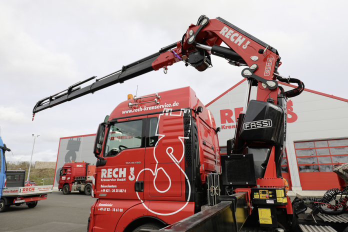 Die ungewöhnliche Kombi TGX 33.580 und Fassi F545 zählt seit knapp einem halben Jahr zum Einsatzbestand der Firma und folgt einer Linie, die Geschäftsführer und Inhaber Frank Rech schon vor Jahren als überlebenswichtig erkannt hat: “Die Bandbreite unseres Leistungsangebotes”, erklärt er, “ist sehr umfangreich. Der Fassi macht uns viel flexibler und wir können mit ihm Kraneinsätze fahren, die mit unseren großen Fahrzeugkranen nicht möglich wären.”