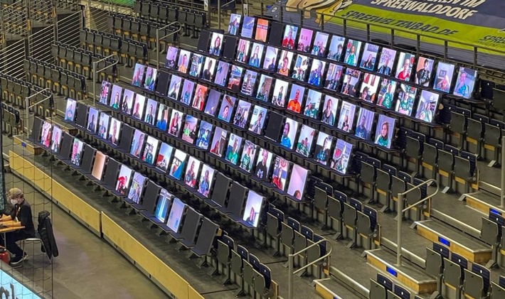 Über 100 Fans waren live auf LED-Bildschirmen zugeschaltet – platziert auf den leeren Rängen – und konnten so bei dem spannenden Duell mitfiebern. Ermöglicht wurde dies durch die speziell für diesen Zweck entwickelte „Stadion-Edition“ der Videokonferenzsoftware alfaview®, die eine synchrone Schaltung der Zuschauerinnen und Zuschauer ins Stadion garantierte.