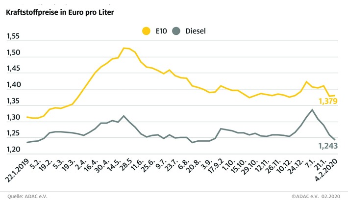 München (ots) – Laut aktueller Auswertung des ADAC bleibt der Benzinpreis an den