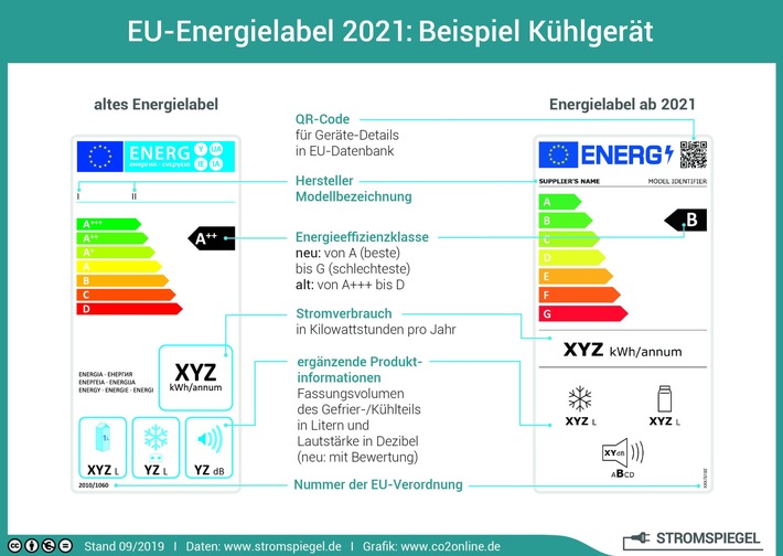 Berlin (ots) – Ab Montag bekommen Geräte wie Kühlschränke, Geschirrspüler und Waschmaschinen ein neues Energielabel. Darauf macht die Initiative „Label 2020“ (de.label2020.eu) der gemeinnützigen Beratungsgesellschaft co2online aufmerksam. Durch die neue Kennzeichnung der Europäischen Union (EU) sollen die Geräte noch effizienter und die Verbraucherinfos verständlicher werden.