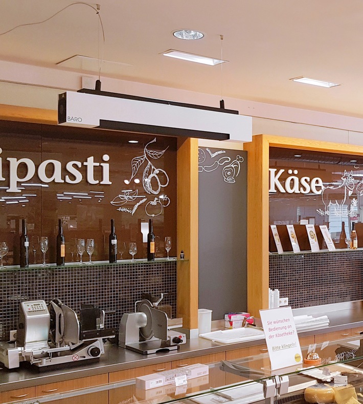 Mit seinen UV-C-Geräten bietet BÄRO technische Lösungen zur Luftentkeimung, die dabei helfen das Risiko von luftgetragenen Infektionen auch in Zukunft nachhaltig zu senken. „Seit über 25 Jahren gehören Luftreinigungssysteme auf UV-C-Basis zu den Geschäftsfeldern von BÄRO, dem Lichtpartner des Handels“, erklärt BÄRO Geschäftsführerin Dr. Sandra von Möller und führt weiter aus: „Supermärkte profitieren davon durch individuelle, abgestufte und in der Praxis bewährte Lufthygiene-Lösungen. Das Spektrum reicht vom flexiblen Einstieg mit mobilen oder deckenmontierten UV-C-Geräten bis zu vollständig in die RLT-Anlage integrierten UV-C-Entkeimungs-Modulen.“ Maske tragen und Abstand halten ist jedoch trotzdem Pflicht, denn die UV-C-Luftreinigung ist eine effektive und sinnvolle Ergänzung zu den geltenden Corona-Maßnahmen.