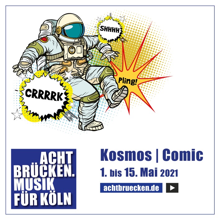 In seiner elften Ausgabe widmet sich das Festival ACHT BRÜCKEN | Musik für Köln unter dem Motto „Kosmos | Comic“ den Schnittstellen von zeitgenössischer Musik und sequenzieller Kunst, Comics, Graphic Novels, Illustrationen und Animationsfilmen. Pandemiebedingt kann das Festival nicht wie geplant vor Publikum stattfinden, das Programm wird aber mit 27 Konzert-Streams und Musikfilmproduktionen weitgehend ins Internet verlegt.