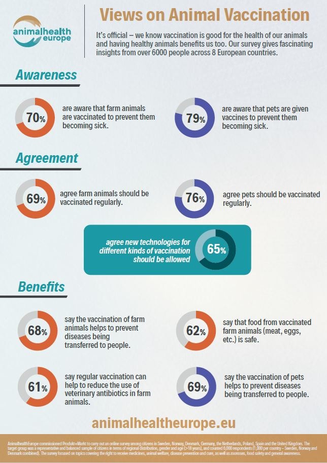 „Impfstoffe für Tiere helfen, Krankheiten zu verhindern, das Wohlbefinden der Tiere zu verbessern und den verantwortungsvollen Einsatz von therapeutischen Behandlungen wie Antibiotika zu optimieren. Sie stoppen oder verlangsamen auch die Übertragung von neu auftretenden, länderübergreifenden Krankheiten, um sowohl die öffentliche Gesundheit als auch unsere landwirtschaftlichen Gemeinschaften zu schützen. Die Zusammenarbeit mit den Behörden, um eine bessere Vorbereitung auf die Erkennung und Bekämpfung von Krankheiten in der Zukunft zu gewährleisten, ist eine Priorität für die Tiergesundheitsindustrie“, so Roxane Feller, Generalsekretärin von AnimalhealthEurope, über die bevorstehende Umsetzung der Verordnung. Eine kürzlich von AnimalhealthEurope in Auftrag gegebene Umfrage (https://www.bft-online.de/pressemitteilungen/befragung-unter-eu-buergern) in acht europäischen Ländern zeigte ebenfalls ein wachsendes Bewusstsein bei EU-Bürgern für die Wichtigkeit von Tierimpfungen: 69 % der Befragten stimmten zu, dass Nutztiere regelmäßig geimpft werden sollten. Die EU kann die Akzeptanz von Impfungen weiter fördern, indem sie Anreize für die Entwicklung von Instrumenten und Infrastrukturen schafft, die Früherkennung und Tierkennzeichnung unterstützen und die Ausbreitung von Krankheiten verhindern – auch durch eine flexible Regulierung im Falle von Ausbrüchen. Die Förderung und Unterstützung der öffentlichen Akzeptanz von Präventionsmaßnahmen in landwirtschaftlichen Betrieben, wie Biosicherheit und Impfung, werden auch die Einführung und Verwendung neuer Technologien und weiteren Instrumenten zur Prävention für Tierärzte und Landwirte erhöhen. Dies trägt zur Verbesserung der Tiergesundheit und des Tierwohls sowie zu nachhaltigen landwirtschaftlichen Praktiken bei. Mehr Informationen: