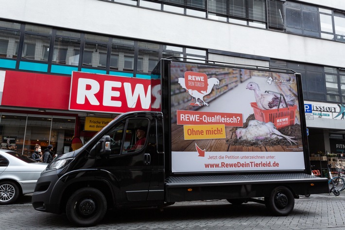 Berlin (ots) – Die Albert Schweitzer Stiftung für unsere Mitwelt protestiert am Donnerstag (20. Mai) vor der Niederlassung der Rewe Group (Rewe, Penny u. a.) in Teltow gegen Tierquälerei. Gemeinsam mit kritischen Kund:innen fordert sie Deutschlands zweitgrößten Lebensmitteleinzelhändler auf, höhere Tierschutzstandards in der Hühnermast einzuführen. Eine entsprechende Petition unterzeichneten binnen 24 Stunden mehr als 60.000 Menschen. Rewe hinkt Mitbewerbern wie Aldi oder Norma hinterher und wird den eigenen vollmundigen Nachhaltigkeitsversprechen nicht gerecht, so die Kritik der Tierschützer:innen.