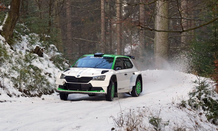 fahren zum ersten Mal mit einem SKODA FABIA Rally2 evo in neu aufgestellter