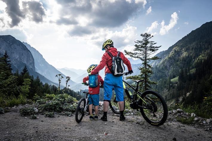 Mountainbike-Outdoorbild unter dem Titel „Unterwegs mit best Buddys“. Einig war