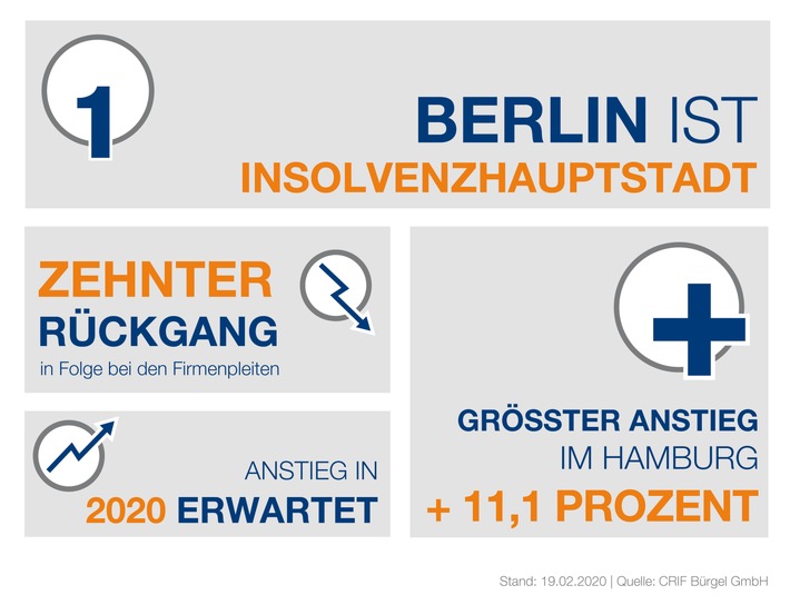 Hamburg (ots) – Die Zahl der Firmeninsolvenzen ist in Deutschland 2019 erneut