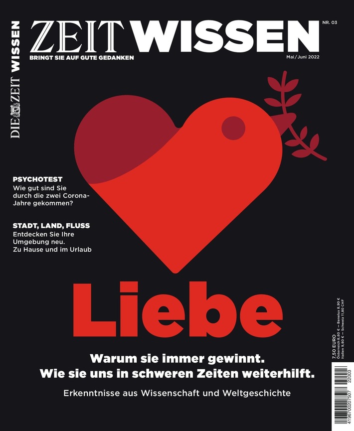 Die aktuelle Ausgabe von ZEIT WISSEN (Heft 3/2022 mit dem Titel „Liebe – Warum sie immer gewinnt. Wie sie uns in schweren Zeiten weiterhilft“) erscheint am 29. April im Handel und ist auch hier erhältlich.