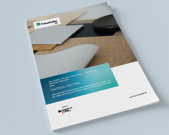 Aspekte wie die Lebensdauer und Recyclingfähigkeit von Produkten gewinnen im Zuge der steigenden gesellschaftliche Relevanz von Nachhaltigkeit an Bedeutung und werden sich langfristig in deren Nachfrage widerspiegeln. Diesem Wandel muss sich auch die Fahrzeugindustrie stellen und den gesamten Entwicklungsprozess in Bezug auf Nachhaltigkeit über alternative Antriebssysteme und Karosserie hinaus weiterentwickeln. Das betrifft neben technologischen Systemen auch die Materialien und Ausstattungskomponenten im Innenraum eines Fahrzeugs. Hierzu zählen Aspekte wie beispielsweise der Einsatz qualitativ hochwertiger Materialien, langlebige und demontierbare Konstruktionen und die Wiederaufbereitung und Wiederverwendung von Fahrzeugkomponenten. Der Einsatz von austauschbaren, recyclingfähigen Elementen im Innenraum und Materialien aus nachwachsenden oder recycelten Rohstoffen, die der Wertschöpfungskette wieder zugefügt werden können, leistet nicht nur einen Beitrag für den Ressourcen- und Klimaschutz, sondern erfüllt die Bedürfnisse der zukünftigen Zielgruppen der Automobilindustrie. Um herauszufinden, wie verschiedene Materialien tatsächlich auf Personen wirken bzw. wirken sollen und was mit Nachhaltigkeit im Fahrzeuginnenraum konkret verbunden wird, hat das Fraunhofer-Institut für Arbeitswirtschaft und Organisation IAO im Rahmen des Projekts »futureFlexPro« eine internationale Untersuchung durchgeführt. »Material matters. Internationale Studie zur Wahrnehmung von Nachhaltigkeit und Materialanforderungen im Fahrzeuginnenraum« liefert wichtige Ansatzpunkte für die Automobilindustrie, um auf aktuelle Trends und gesellschaftliche Entwicklungen im Bereich der Nachhaltigkeit zu reagieren und bedürfnisorientierte Designs zu entwickeln.