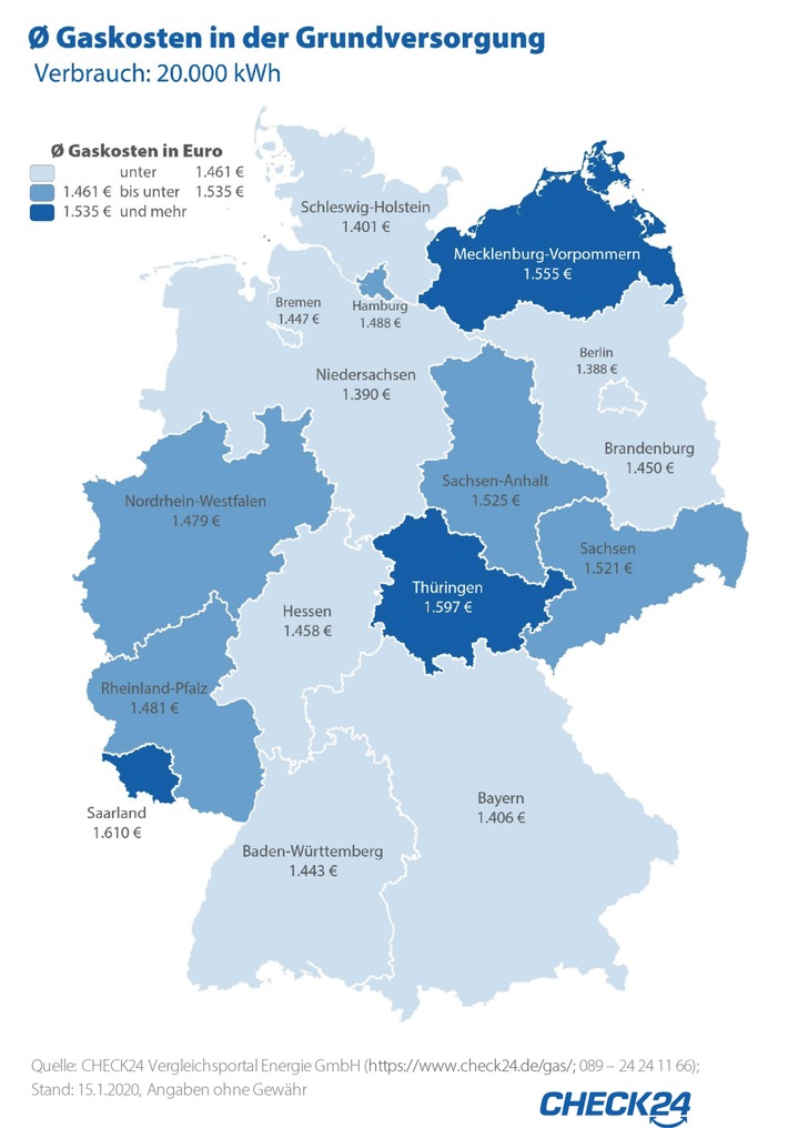 20.000 kWh 448 Euro. Mit durchschnittlich 547 Euro können Thüringer am meisten