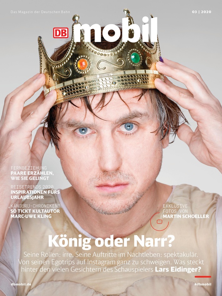 den deutschen Schauspieler Lars Eidinger für den März-Titel der DB MOBIL in