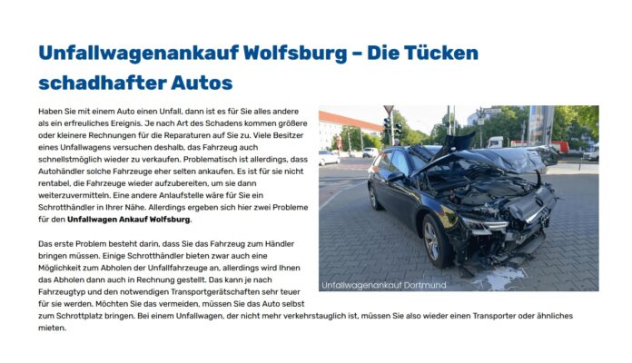 Wenn Sie Ihren Unfallwagen in Wolfsburg verkaufen möchten oder einen seriösen Gebrauchtwagen Ankauf suchen, setzen Sie doch einfach auf die jahrelange Erfahrung sowie des überzeugende Kompetenz des Autohändeler von Auto-Ankauf-24.de.