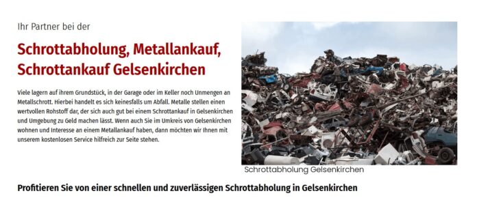 Sie lesen gerade: Fahrender Altmetallsammeldienst in ihre Stadt Gelsenkirchen durch Schrottabholung-Nrw24.de – ein Anruf genügt