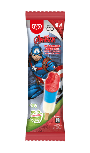 Für Fans der Marvel Avengers liegen ab diesem Sommer die zwei Wassereissorten Captain Marvel und Captain America in den Truhen. Captain Marvel besteht aus Wassereis mit Himbeer-, Heidelbeer- und Zitronengeschmack, Captain America aus Wassereis mit Himbeer-, Heidelbeer- und Ananasgeschmack. Beide Sorten haben eine Glasur mit Keksstücken und Erdbeergeschmack und orientieren sich an den Farben der namensgebenden Superhelden.
