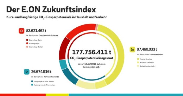178 Millionen Tonnen CO2 jährlich in Haushalt und Verkehr – E.ON Zukunftsindex zeigt Einsparpotenzial von Balkon-Kraftwerken, E-Auto, Wärmepumpe und Co.