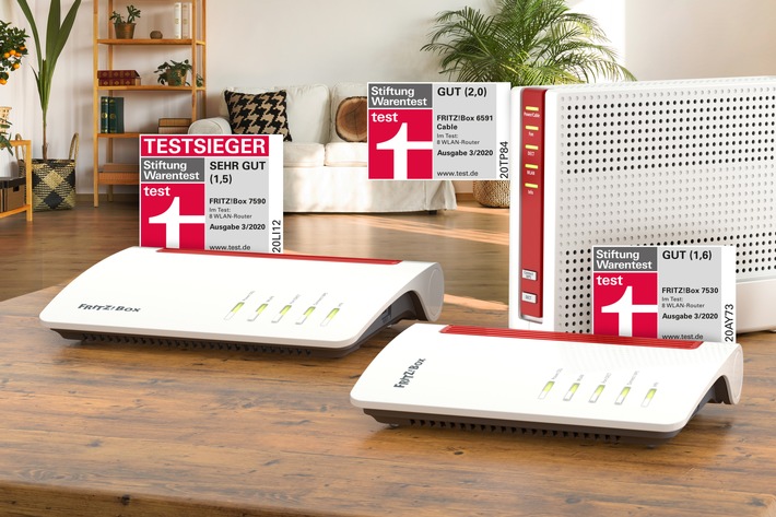 Berlin (ots) – Stiftung Warentest: Drei FRITZ!Box-Modelle an der Spitze des