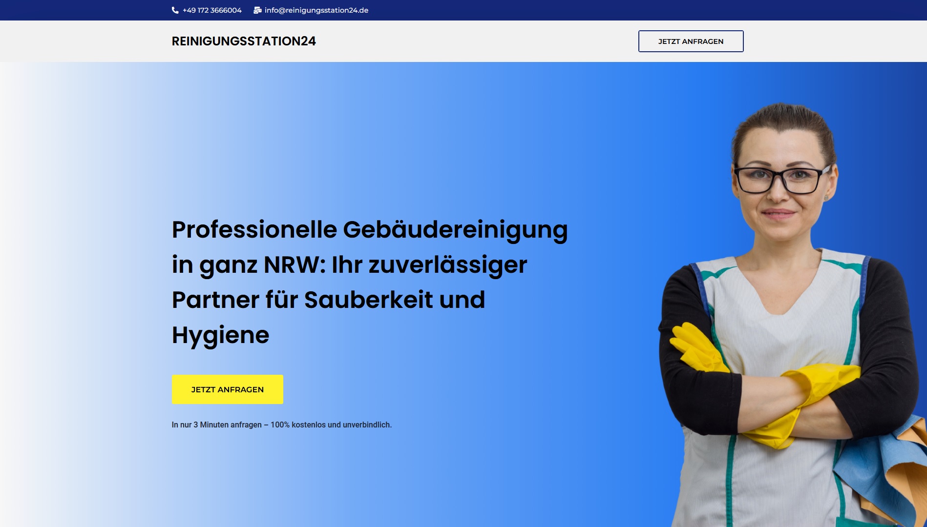 Die Reinigungsstation24 in Mönchengladbach ist auf professionelle Gebäudereinigung spezialisiert. Das Unternehmen bietet eine breite Palette von Dienstleistungen, darunter Unterhaltsreinigung, Grundreinigung, Glas- und Fassadenreinigung, Teppichreinigung und Desinfektionsreinigung. Durch die Anwendung effektiver Reinigungstechniken und den Einsatz umweltfreundlicher Methoden stellt die Reinigungsstation24 sicher, dass Immobilien in optimalem Zustand bleiben. Mit einem klaren Fokus auf erstklassiger Sauberkeit unterstützt das Unternehmen Kunden dabei, ihre Räumlichkeiten hygienisch und ansprechend zu halten.
