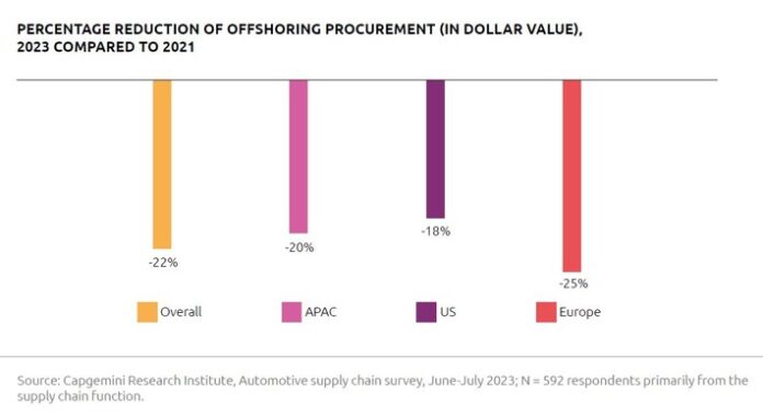 Der Studie zufolge erwarten die Automobilunternehmen, dass die Beschaffung aus Offshoring-Standorten bis 2025 um weitere 19 Prozent zurückgehen wird, da die Produktion von Elektrofahrzeugen steigt und die Herstellung von wichtigen Elektronikkomponenten verlagert wird.