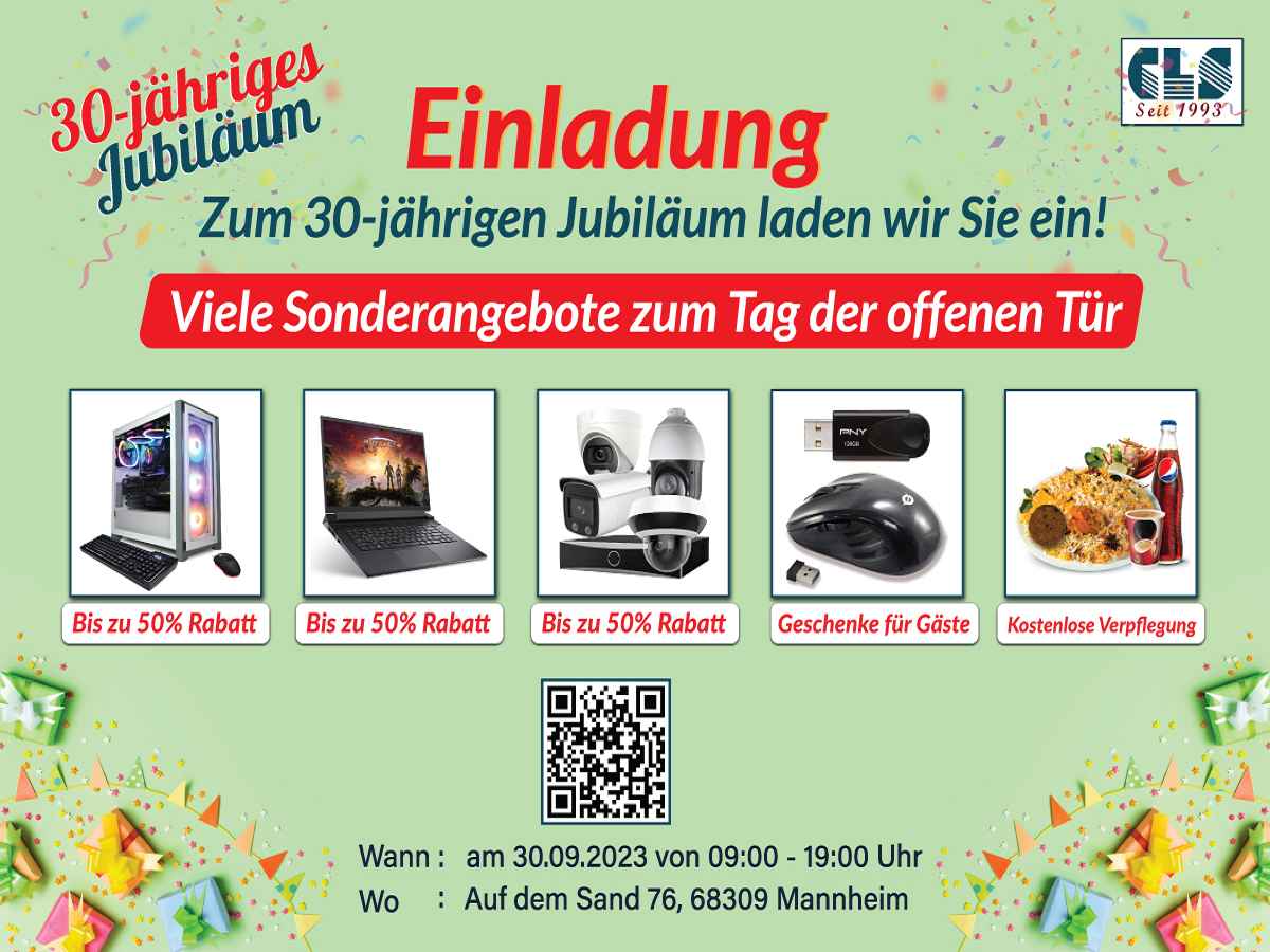 In Mannheim, Deutschland – Am 30. September 2023 feiert CLS-Computer sein 30-jähriges Jubiläum mit beeindruckenden Rabattangeboten.