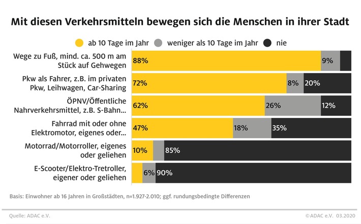 der Befragten sind damit an 10 oder mehr Tagen im Jahr in ihrer Stadt unterwegs,