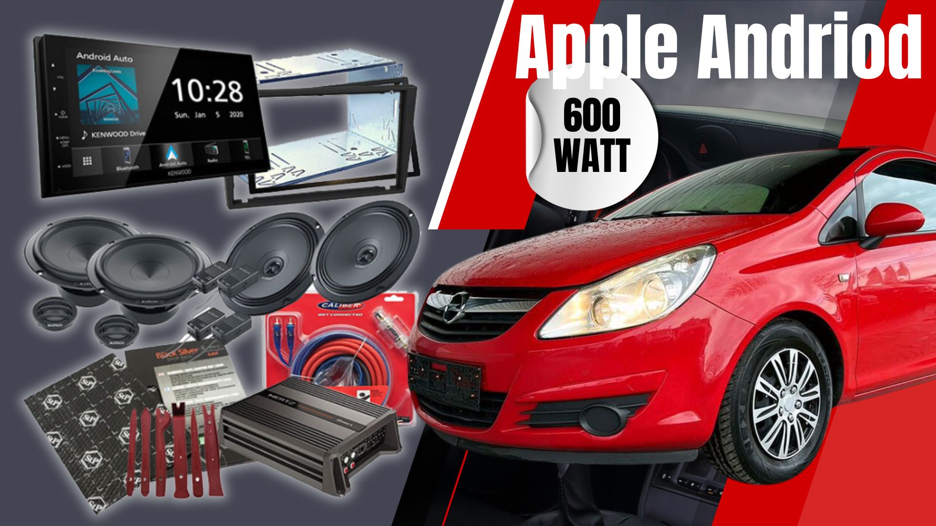 Der Opel Corsa D kommt ab Werk mit einer Standard Werksanlage die im Frontbereich ein 16,5cm 2 Wege System hat und im Heckbereich 130mm Breitbandlautsprecher. Die Soundanlage stößt dabei schnell an ihre Grenzen, für Fahrzeughalter mit gehobenem Anspruch an die Musikwiedergabe ist der Tausch der Soundanlage eine Option. Wer gerne hervorragende Soundqualität genießen möchte und auch das Smartphone gerne benutzt ist dieses Paket Opel Corsa D 600 Watt Power Sound Upgrade 2Din Kenwood die richtige Wahl.