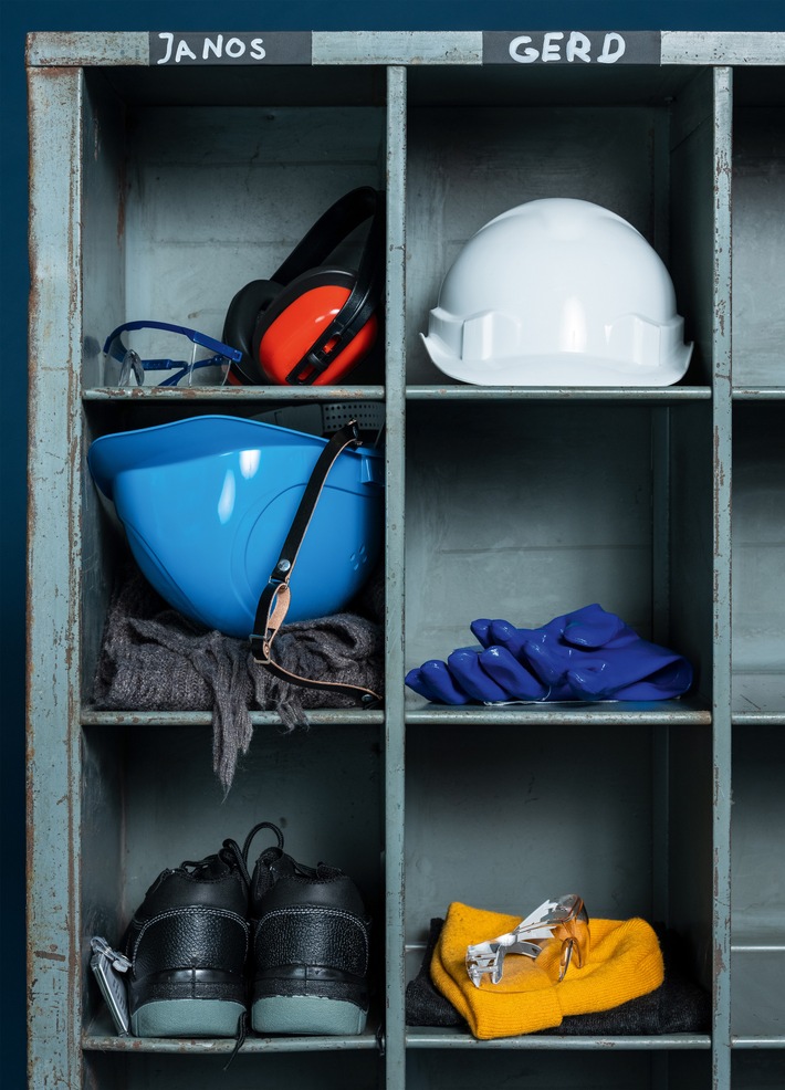 Neben Gehörschutz, Schutzschuhen und Schutzbrillen, die das Innenohr, die Füße