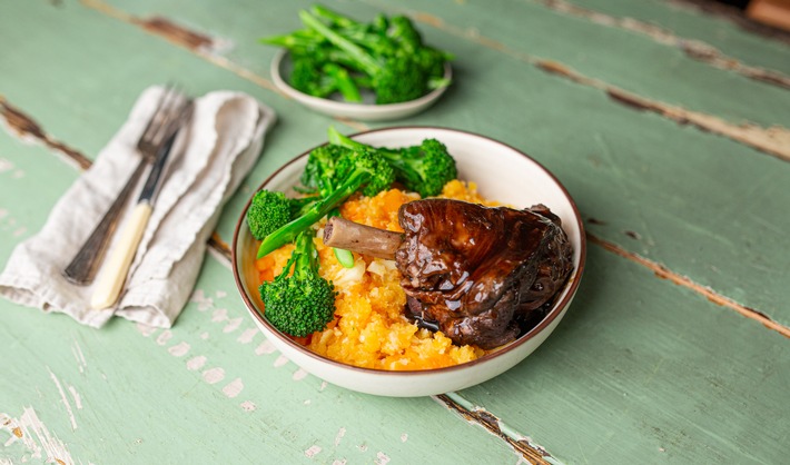 Heilbronn (ots) – Geschmorte Lammhaxe mit Rotwein, Knoblauch & Rosmarin