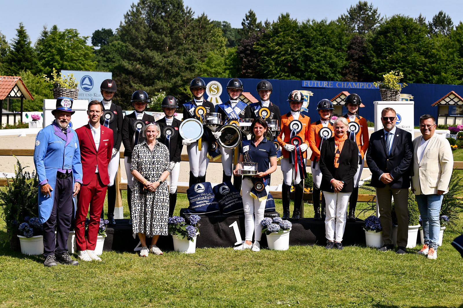 Das internationale Jugendreiterfestival Future Champions auf dem Hof Kasselmann ist zugleich auch EM-Sichtung für die deutschen Nachwuchs-Dressur- und -Springreiter. Insgesamt sind 308 Reiter aus 24 Nationen in dieser Woche auf dem Hagener Borgberg am Start. Besonders deutlich werden Teamgeist und Nationenvielfalt während der ‘Welcome Night’ am Donnerstagabend mit dem Einmarsch der Teams in das Springstadion. Das Turnier läuft noch bis Sonntag, den 15. Juni, der Eintritt für Zuschauer ist an allen Tagen frei.