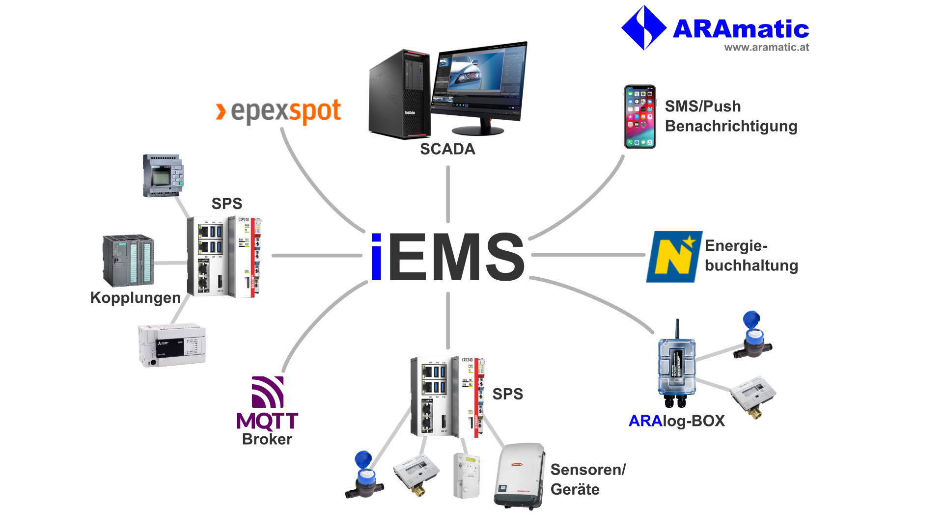 intelligentes Energiemanagementsystem, Energieflüsse optimieren, Energieeffizienz in technischen Anlagen, Energiekosten senken mit iEMS, ARAmatic Energiemanagement, Energieverbrauch analysieren und steuern