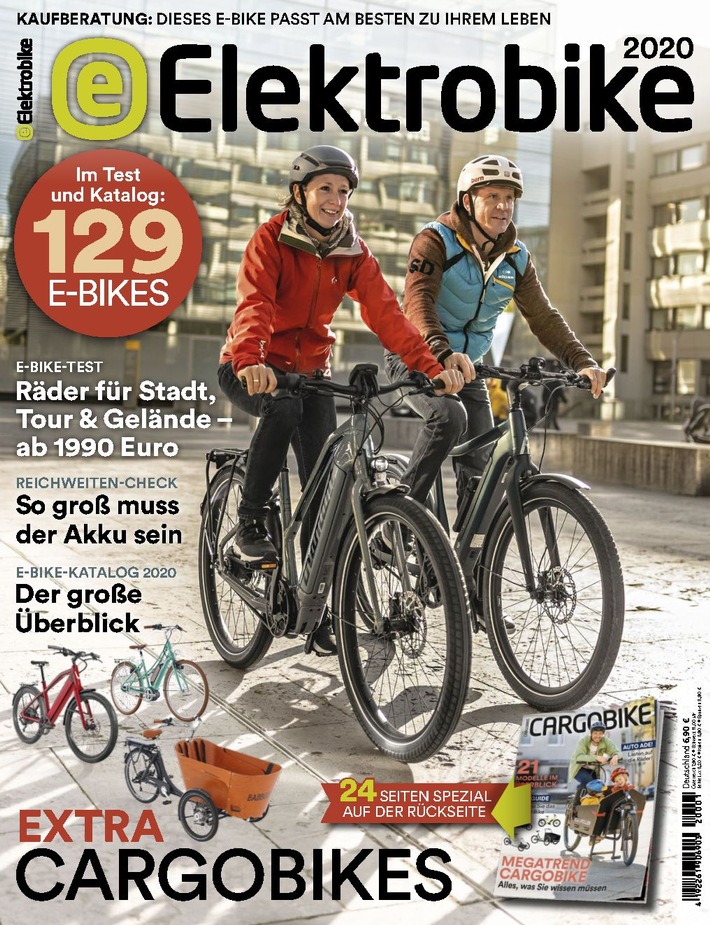 Die Highlights der aktuellen Ausgabe sind ein Marktüberblick mit Informationen zu 63 Rädern und ein großer Test mit 32 aktuellen Modellen jeweils aus allen Kategorien sowie eine Kaufberatung, mit der sich das individuell beste E-Bike ermitteln lässt. Zudem bietet das Heft auf 32 Seiten geballtes E-Bike-Wissen rund um Antriebe, Reichweite, Akkus und vieles mehr.